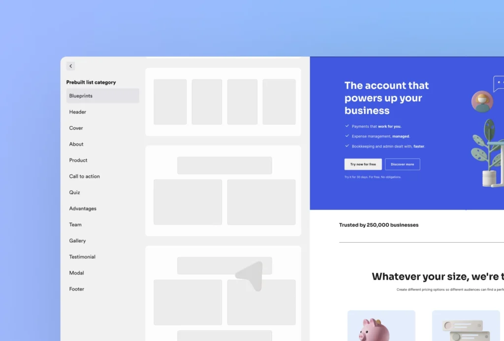 • Launch without coding or design skills