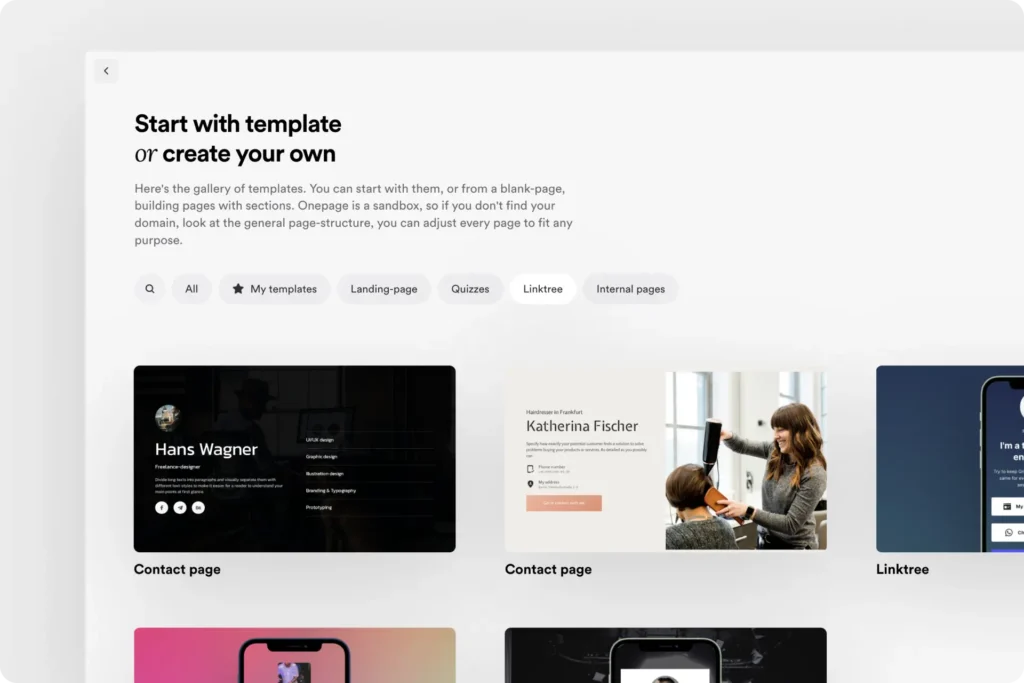 Onepage.io provides professionally designed templates optimized for: